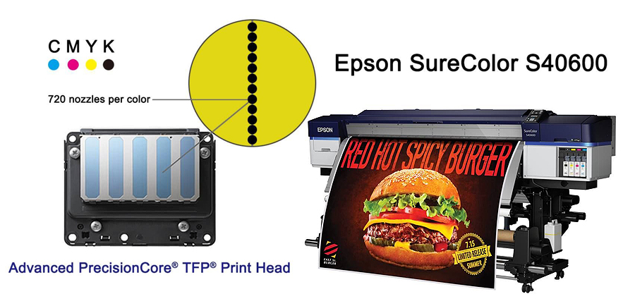 دستگاه چاپ اکو سالونت اپسون S40600 ، جدیدترن دستگاه چاپ اکوسالونت این کمپانی ژاپنی با یک هد است.این ماشین دارایی یه هد TFP اپسون با 10 کانال 360 تایی نازل هست که شرکت اپسون به صورت انحصاری فقط و فقط بر روی دستگاههای سابلیمیشن و اکوسالونت ژاپنی این کمپانی استفاده می کند و در دستگاه های چینی استفاده نمی شود.